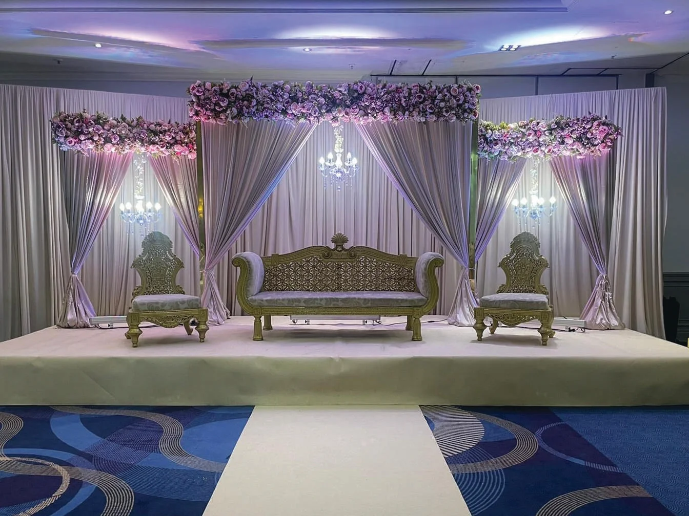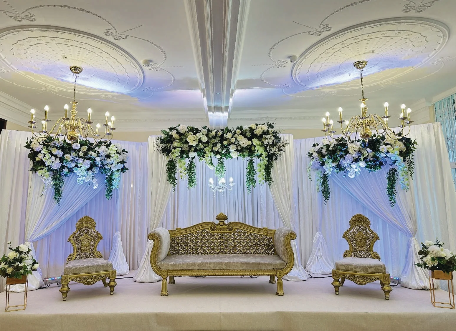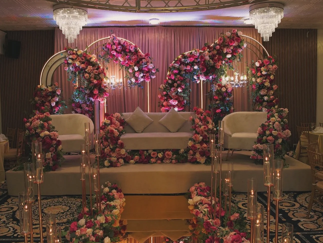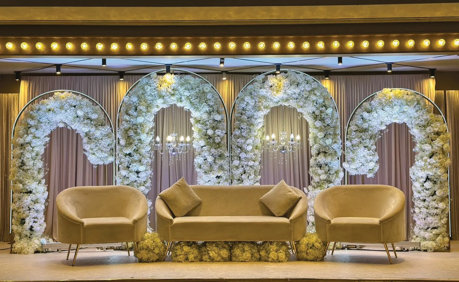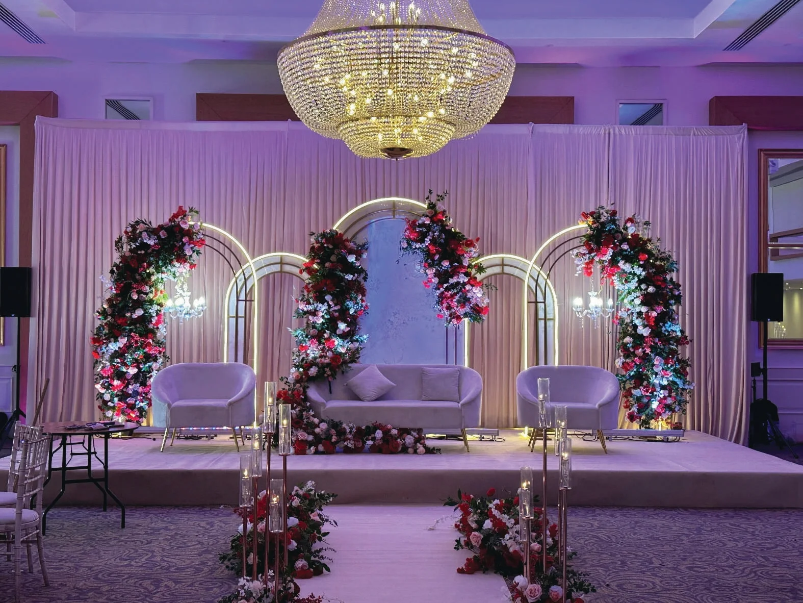 Experience the charm of our wedding stage decoration at Crown Banqueting Suite. Each stage is thoughtfully designed to suit any wedding theme, offering elegant lighting, floral arrangements, and setups perfect for wedding party stage decoration. Capture unforgettable moments on a stage made for memories.