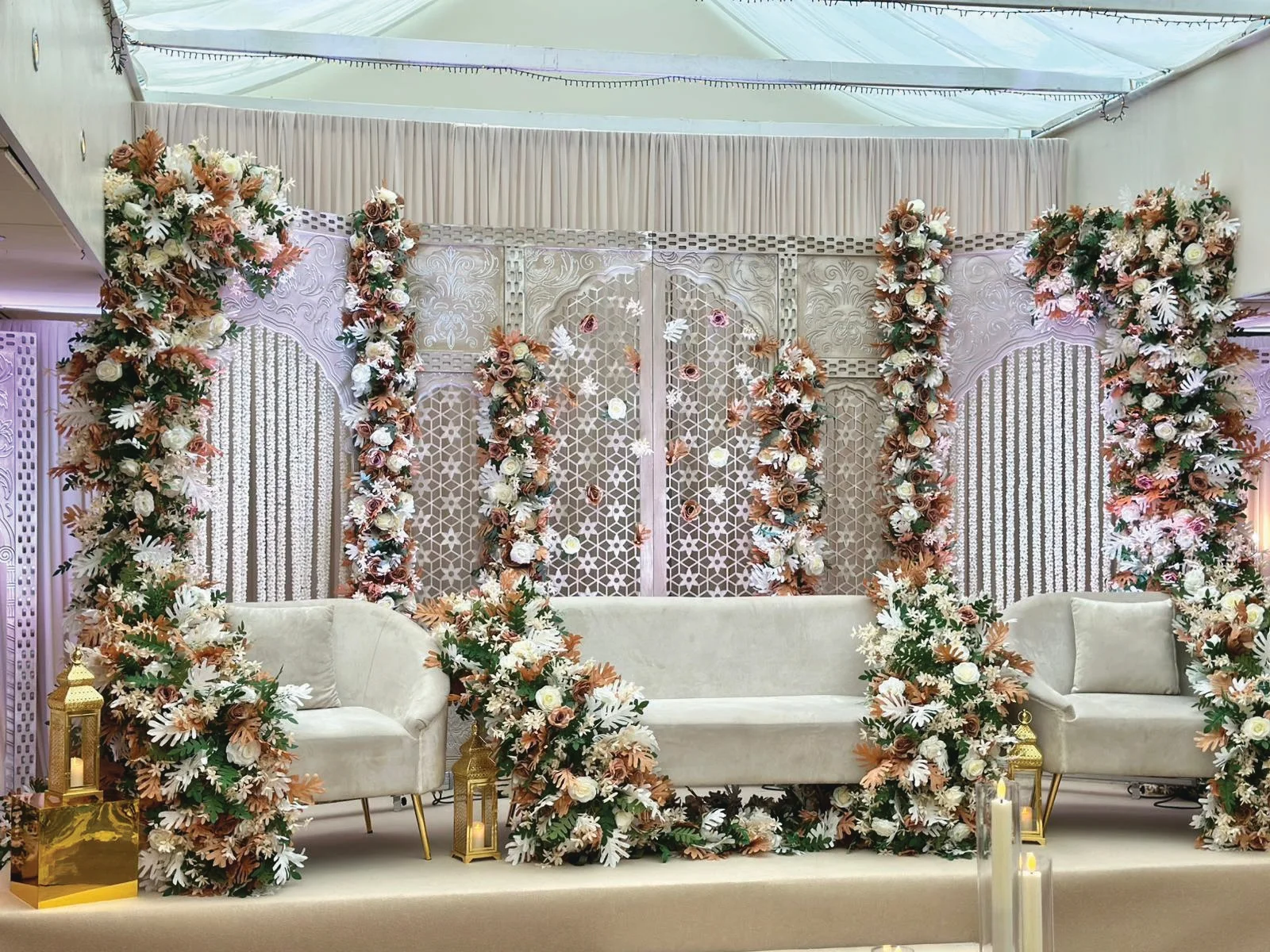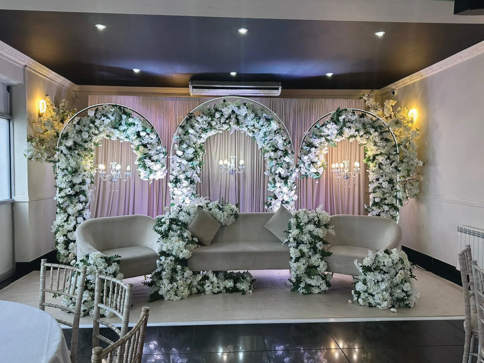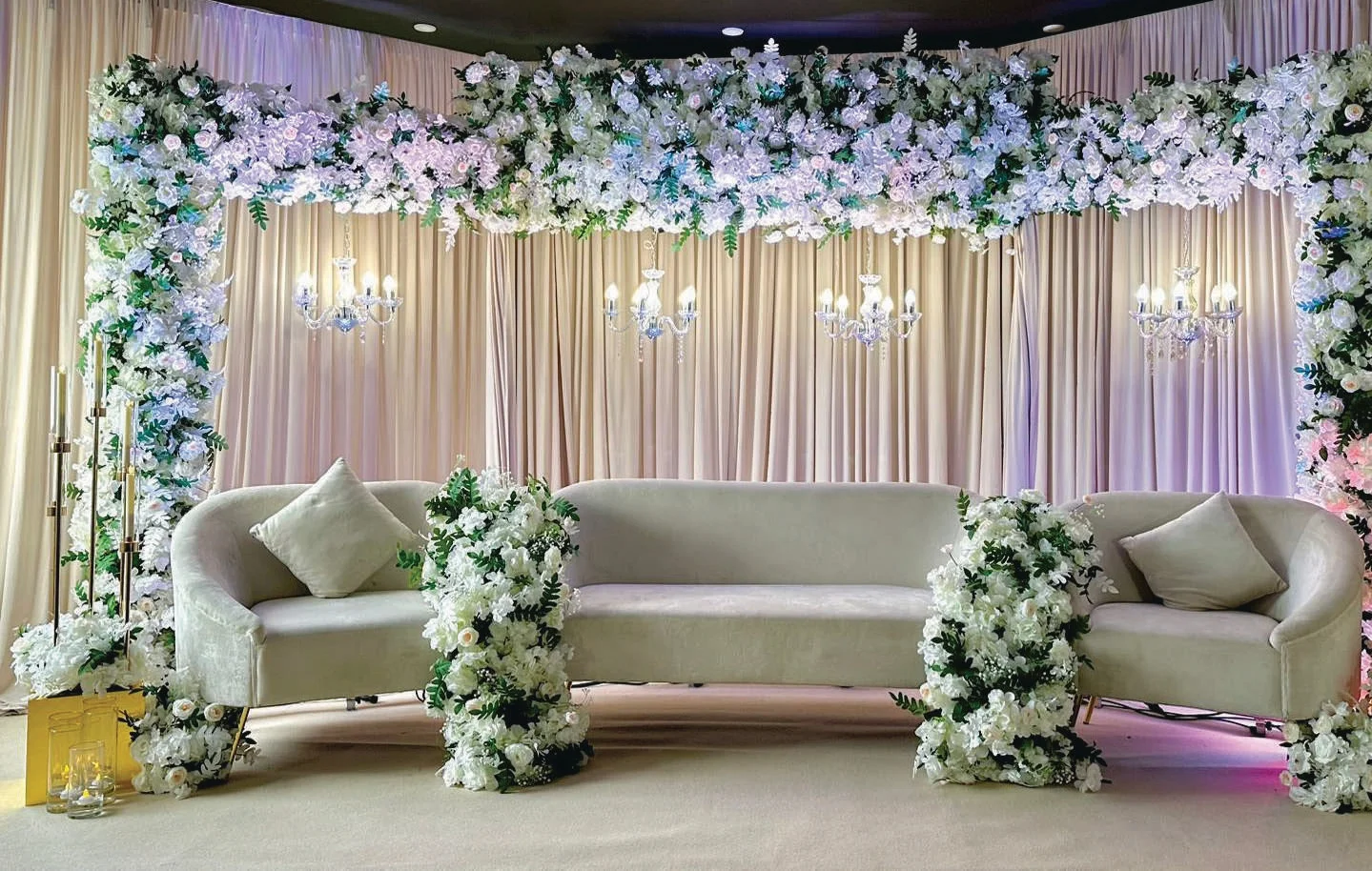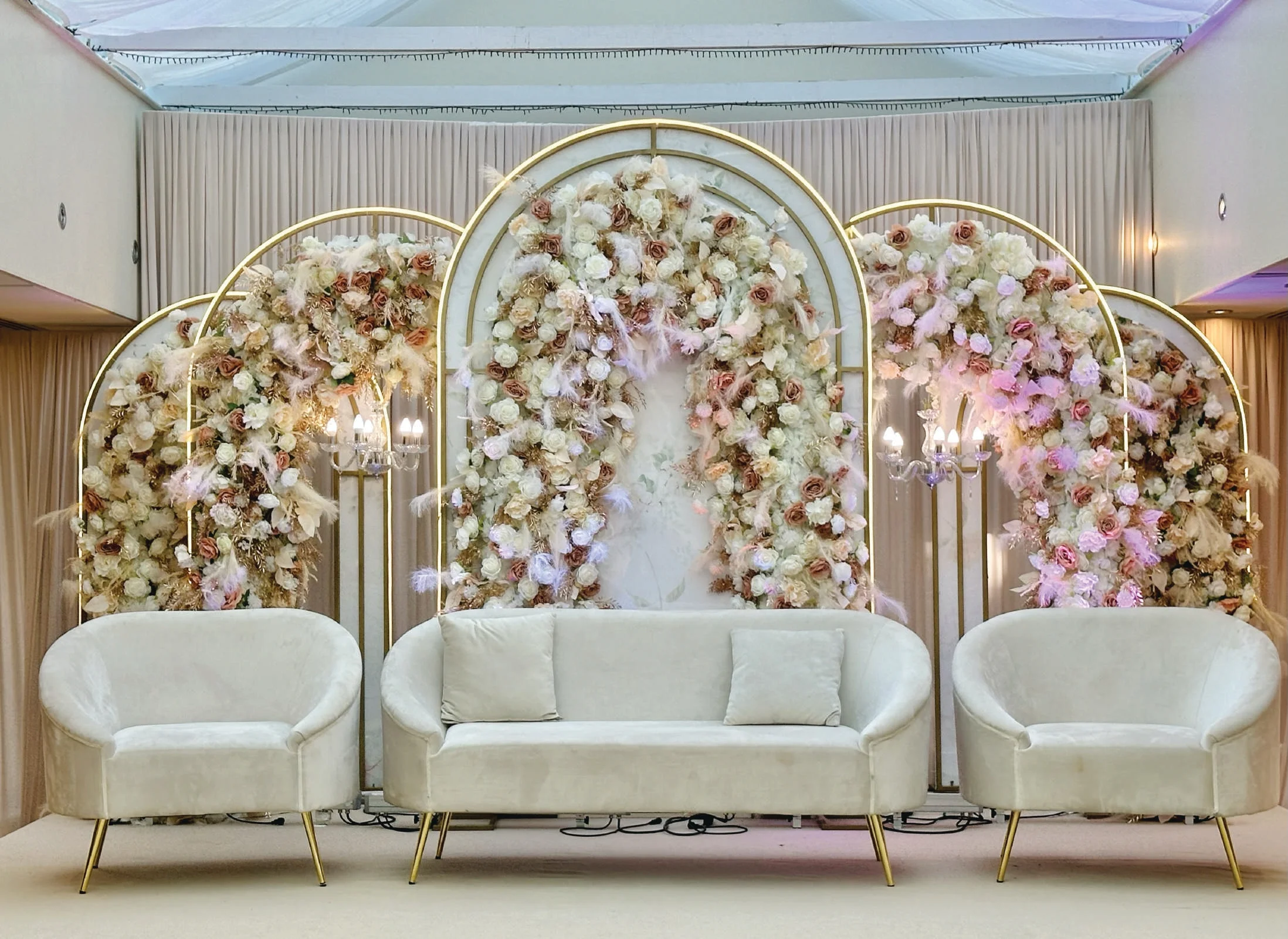 Experience the charm of our wedding stage decoration at Crown Banqueting Suite. Each stage is thoughtfully designed to suit any wedding theme, offering elegant lighting, floral arrangements, and setups perfect for wedding party stage decoration. Capture unforgettable moments on a stage made for memories.