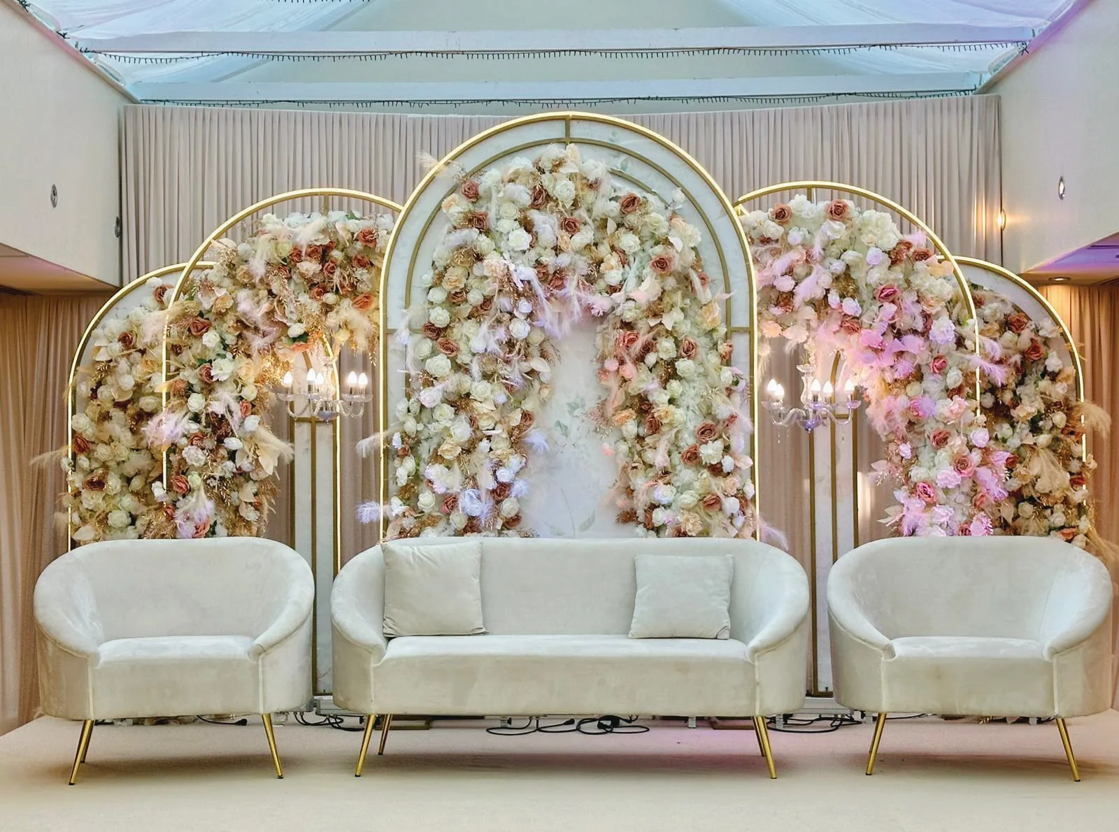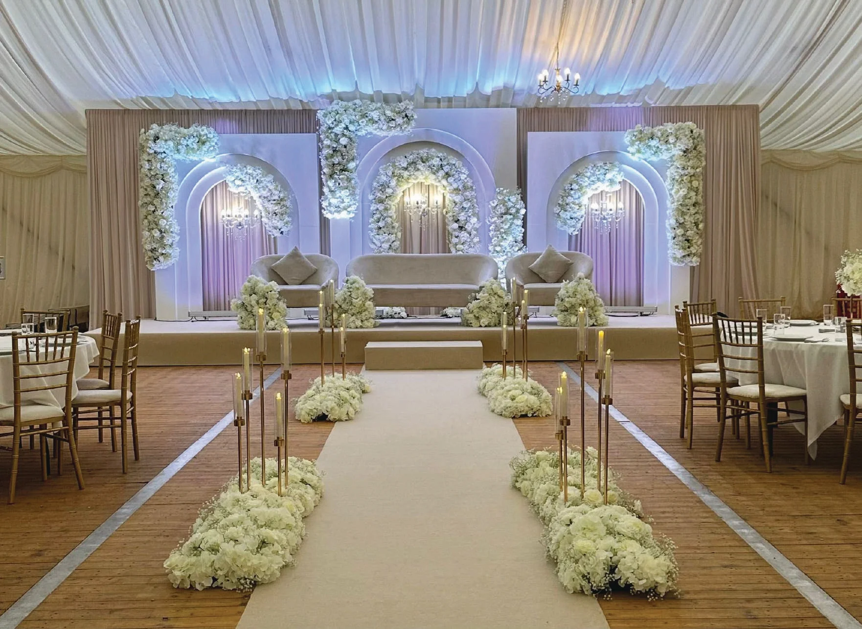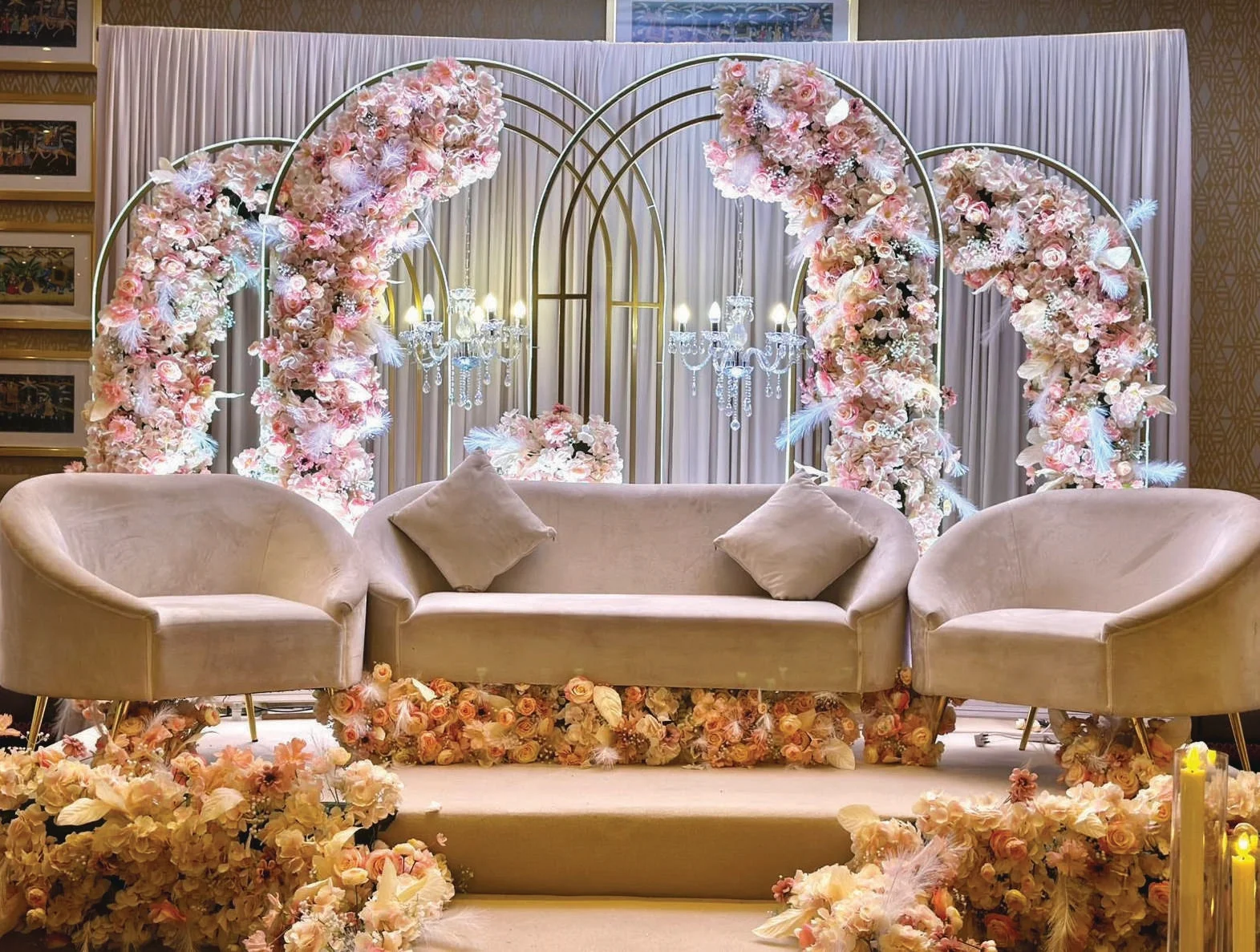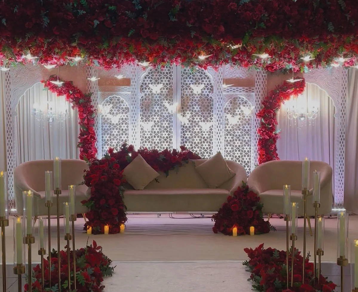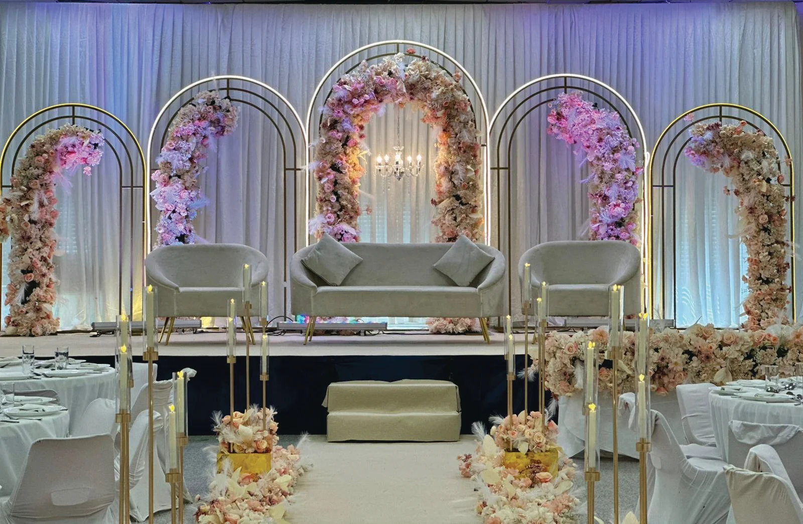 Experience the charm of our wedding stage decoration at Crown Banqueting Suite. Each stage is thoughtfully designed to suit any wedding theme, offering elegant lighting, floral arrangements, and setups perfect for wedding party stage decoration. Capture unforgettable moments on a stage made for memories.