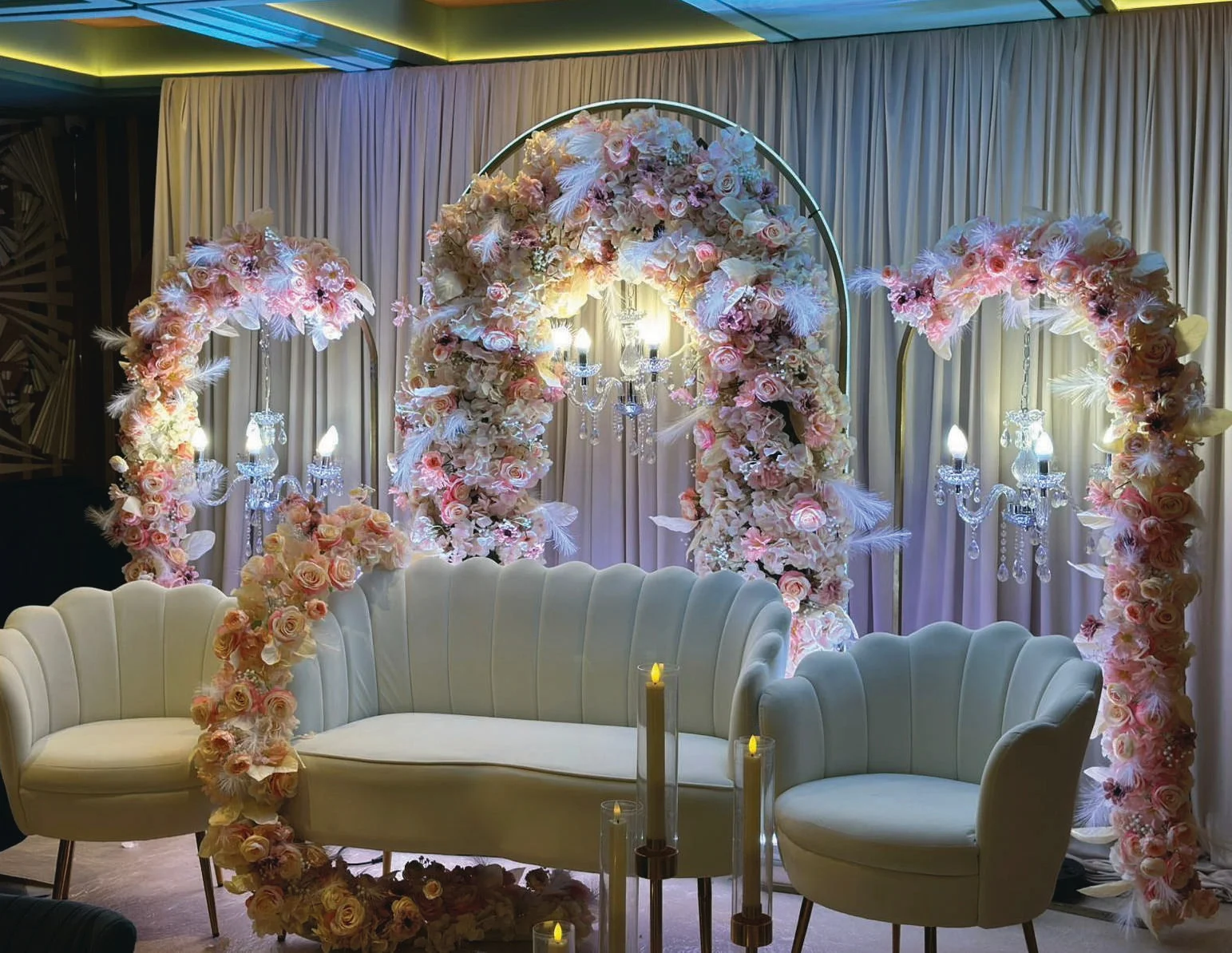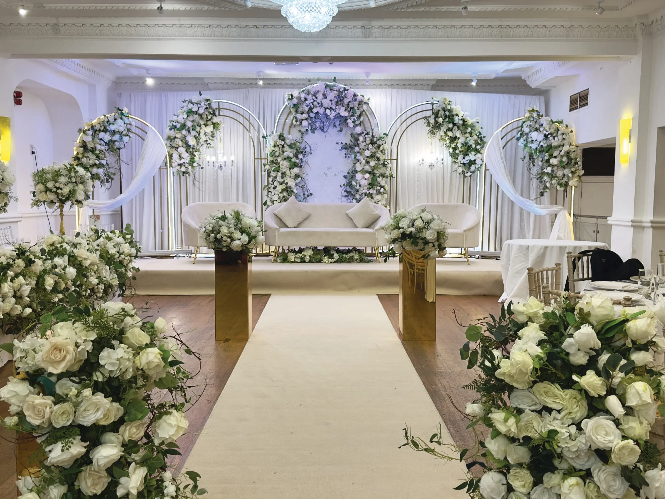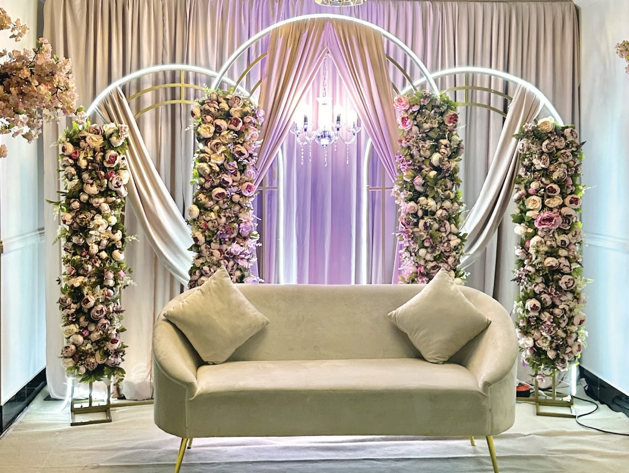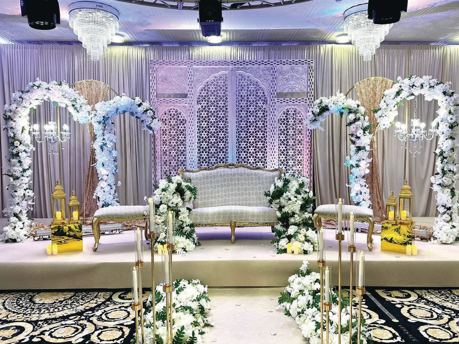 Experience the charm of our wedding stage decoration at Crown Banqueting Suite. Each stage is thoughtfully designed to suit any wedding theme, offering elegant lighting, floral arrangements, and setups perfect for wedding party stage decoration. Capture unforgettable moments on a stage made for memories.