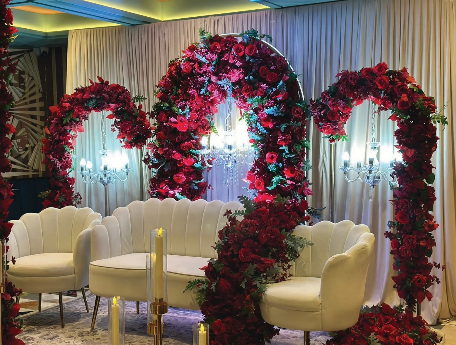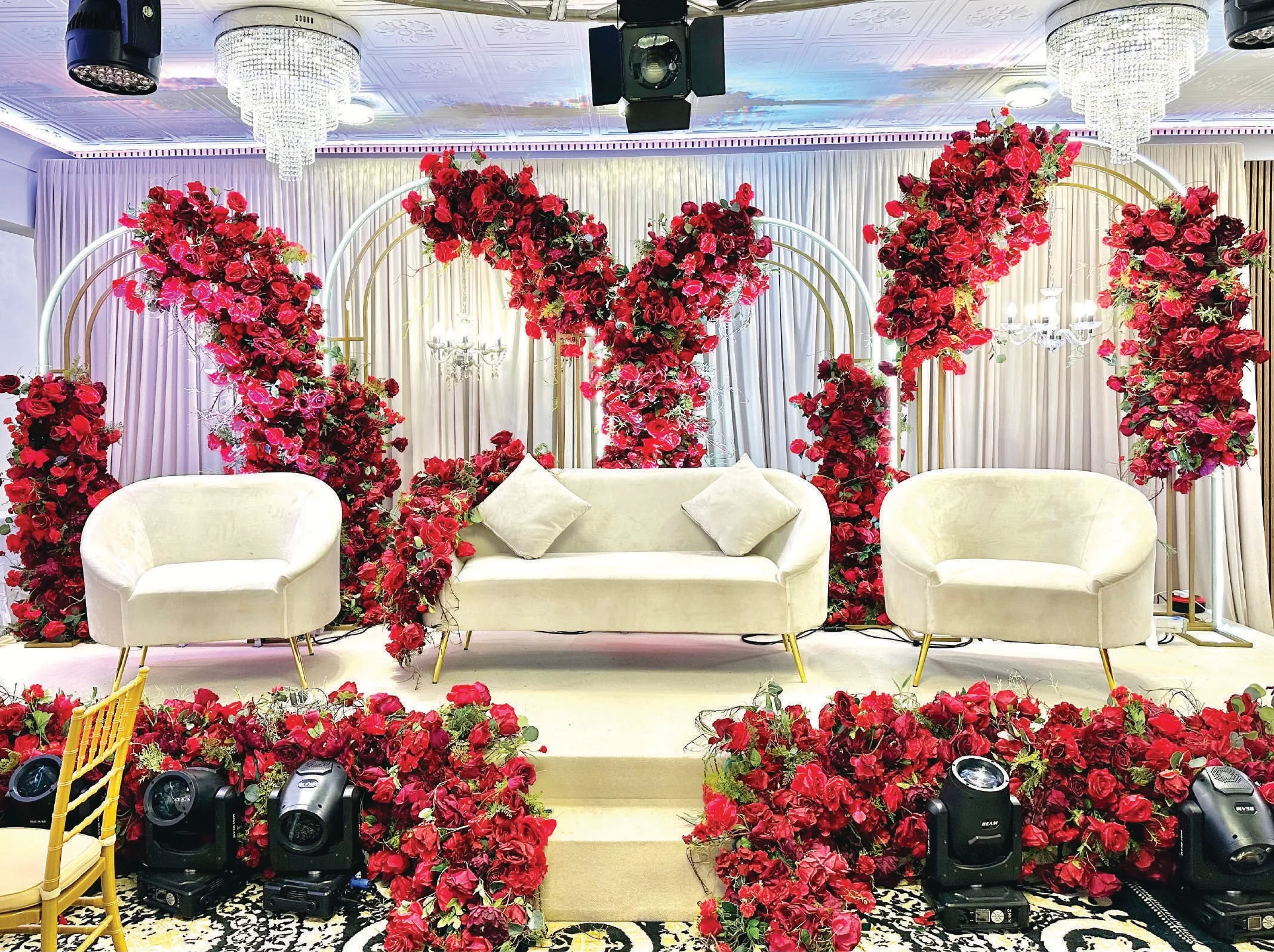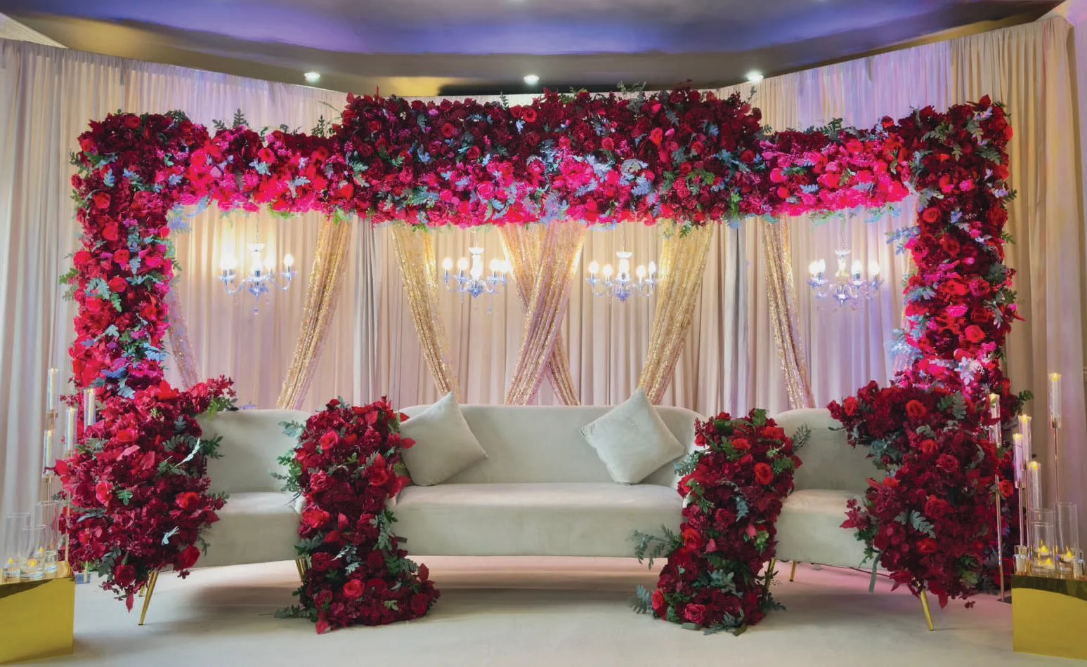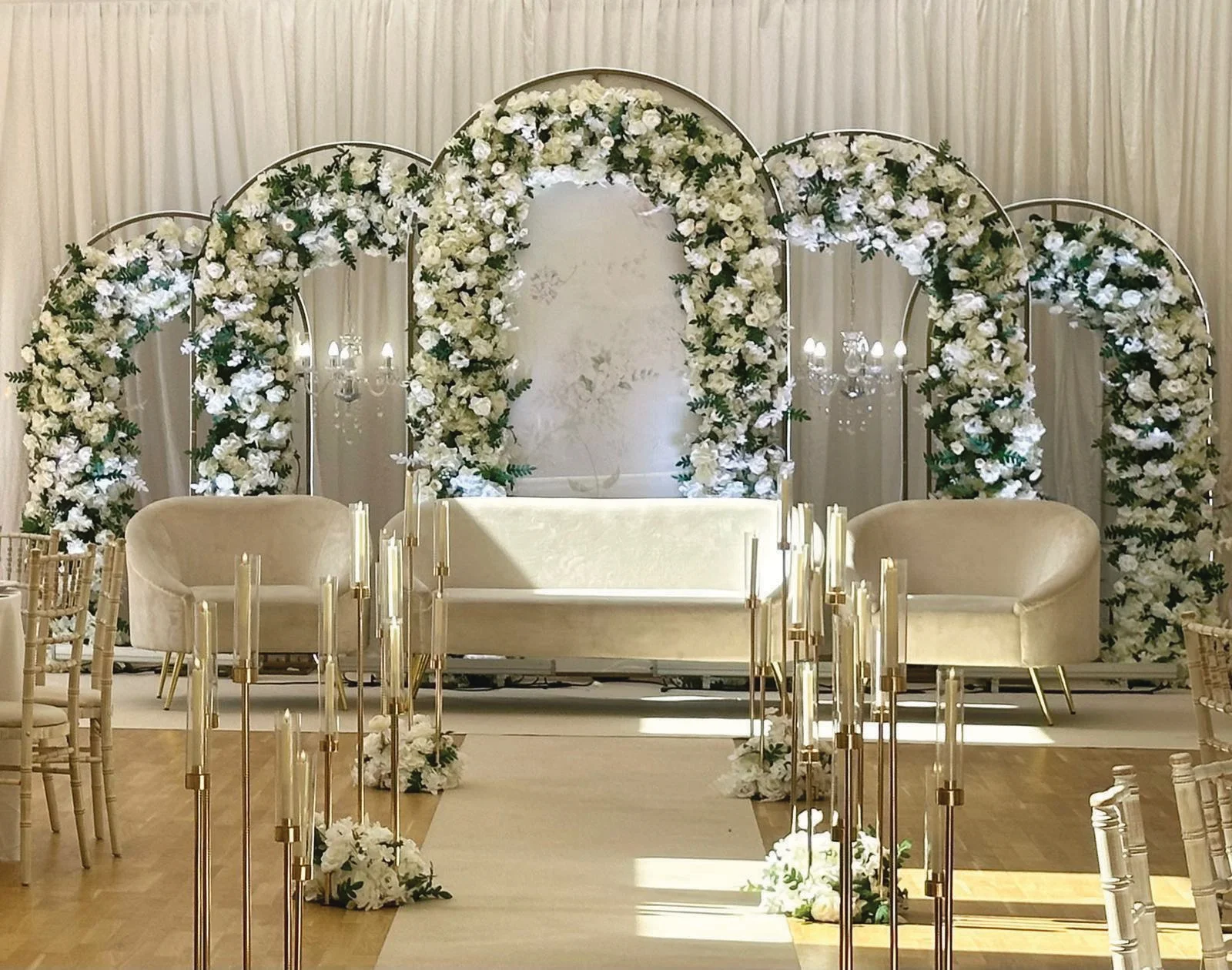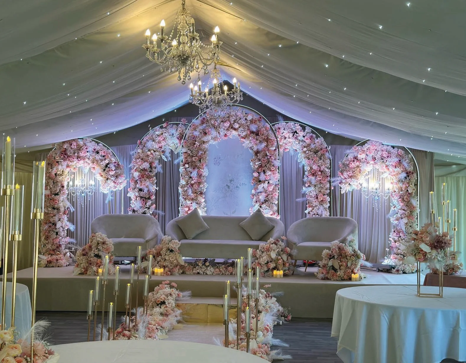 Experience the charm of our wedding stage decoration at Crown Banqueting Suite. Each stage is thoughtfully designed to suit any wedding theme, offering elegant lighting, floral arrangements, and setups perfect for wedding party stage decoration. Capture unforgettable moments on a stage made for memories.
